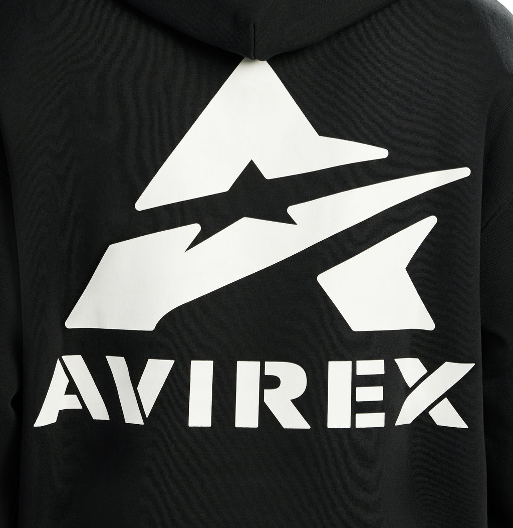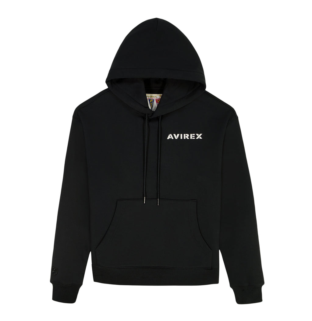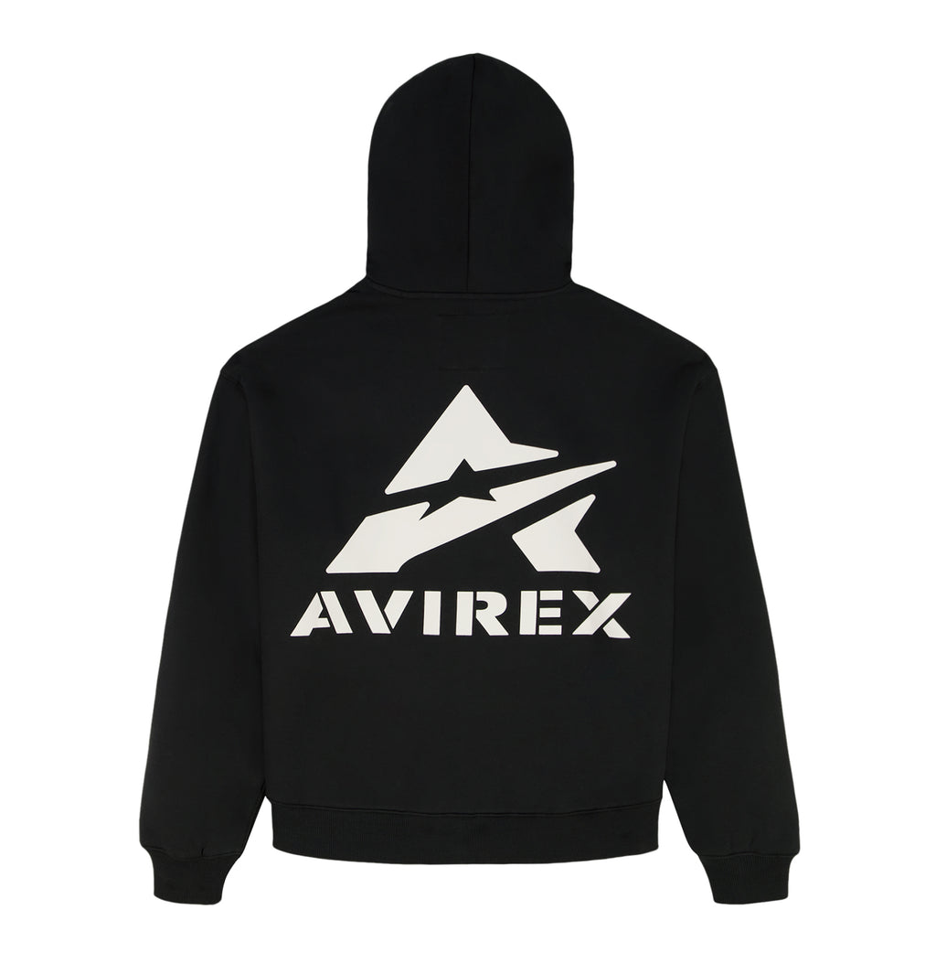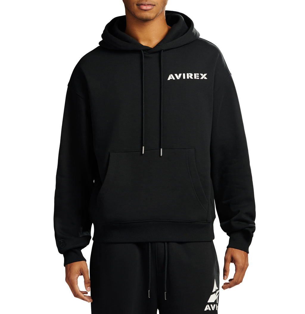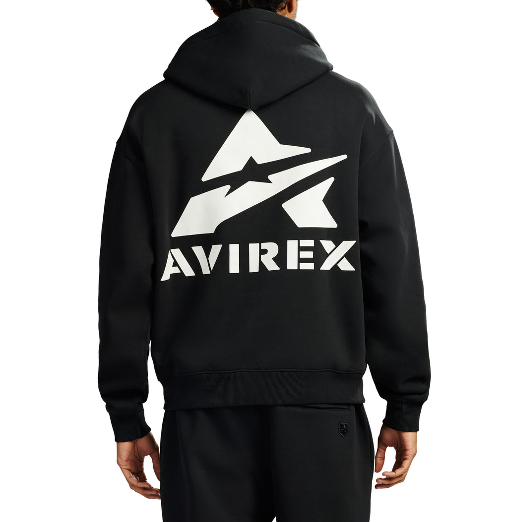 Avirex cotton fleece hoodie. Features Avirex stacked logo at back and logo at front chest.