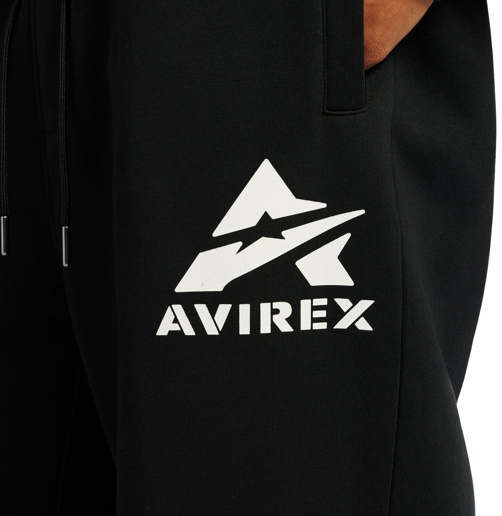 Cotton fleece jogger with Avirex stacked logo at leg and logo patch at back pocket.