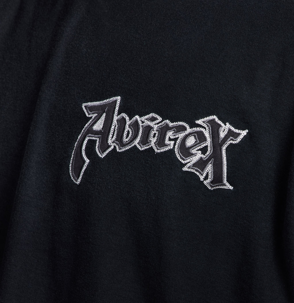 Avirex t-shirt in 100% cotton jersey. Features Avirex embroidery applique at chest and "A" crest patch at sleeve.