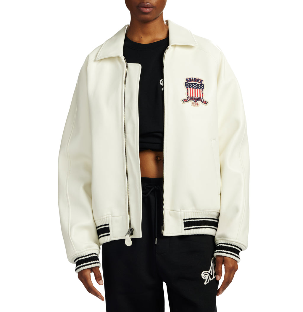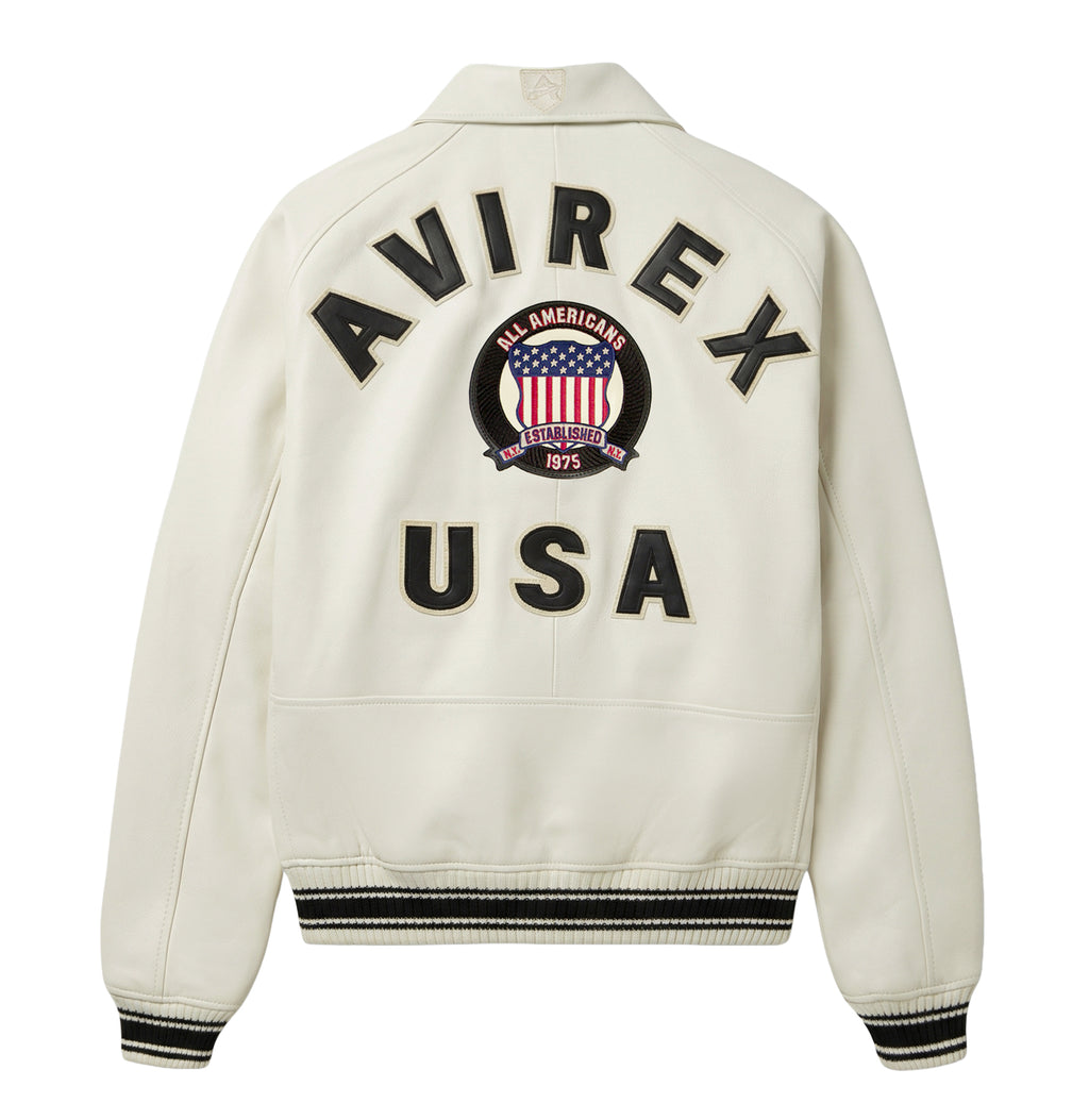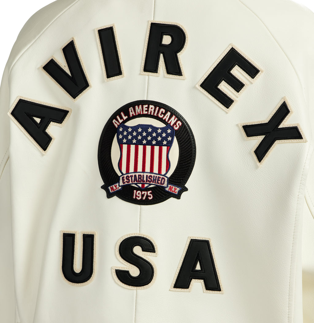 More than 40 years in the making, this original and iconic Avirex military bomber jacket is designed in 100% French lamb leather.