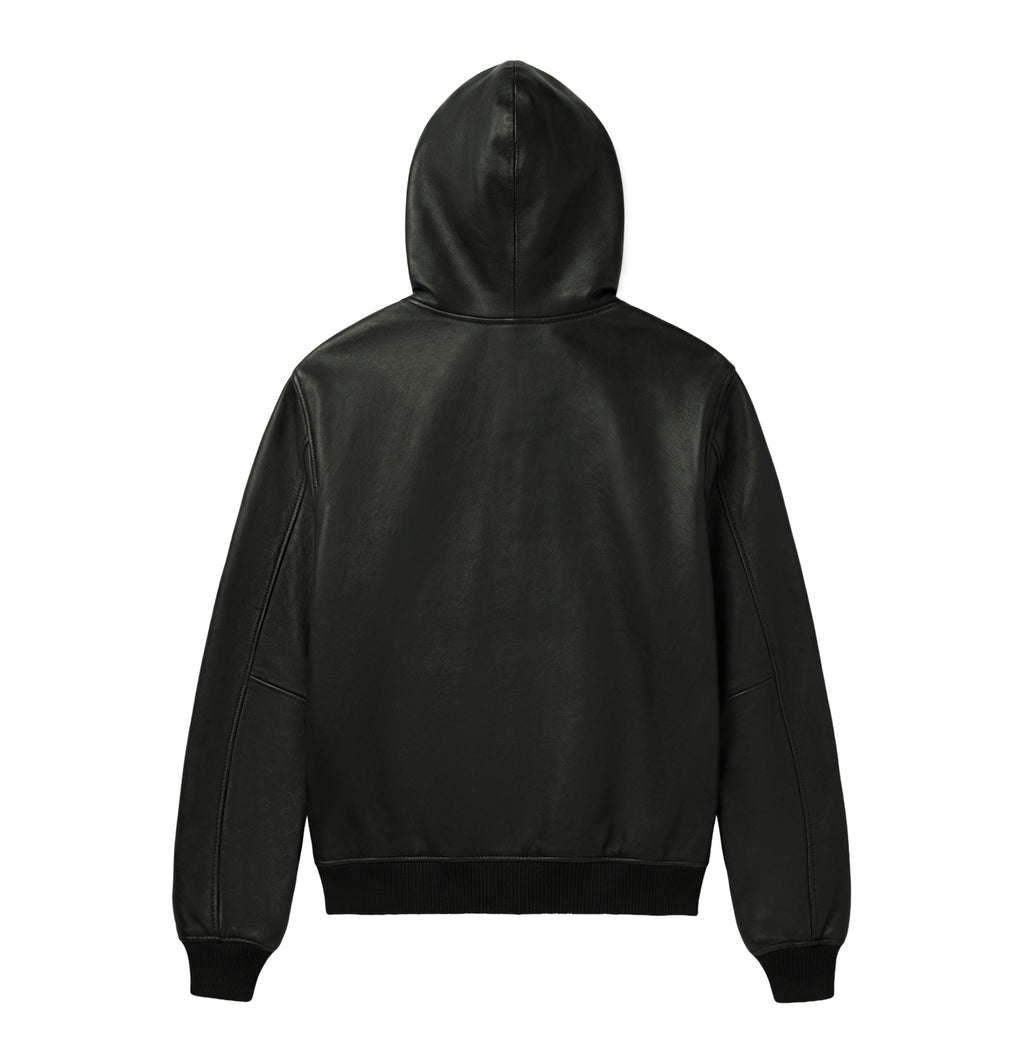 Zipper hoodie in 100% Nappa leather with tonal Avirex script patch at front.